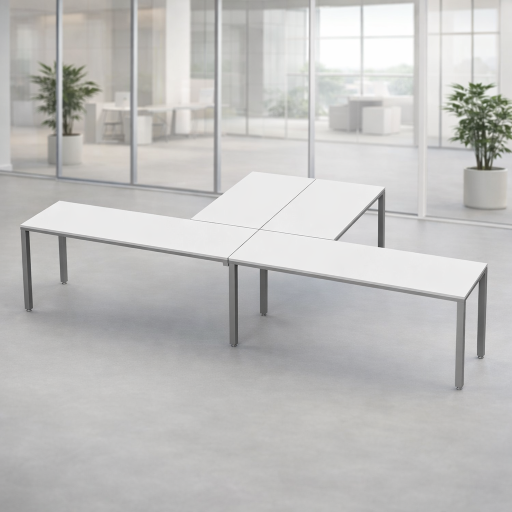 Escritorio en T para 2 personas con melamina color Blanco y base Oxford es la solución perfecta para oficinas modernas y espacios de coworking que buscan aprovechar mejor el espacio sin perder comodidad. Su diseño favorece el trabajo colaborativo, mejora la organización y crea un entorno dinámico y altamente productivo.