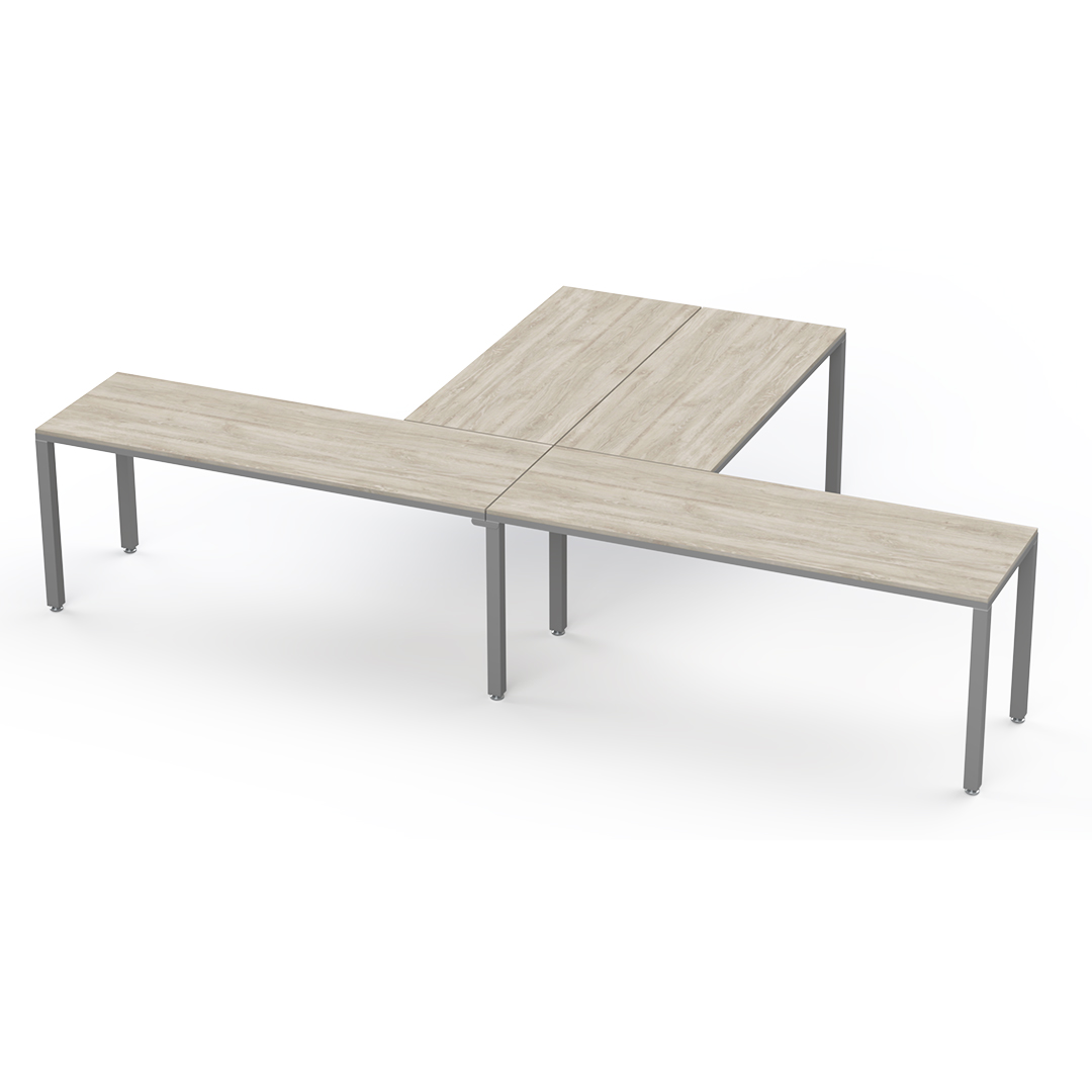 Escritorio en L es una configuración de Billydesk con Melamina Encino polar con estructura metálica Oxford. Ideal para espacios de oficina que requieren funcionalidad y versatilidad, ofrece dos superficies de trabajo para multitareas, como atención a visitas y gestión de papelería. Un sistema flexible y escalable que permite crecer a bajo costo sin comprometer diseño ni resistencia.