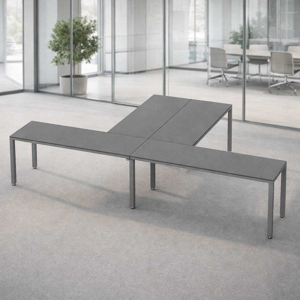 Escritorio en L es una configuración de Billydesk con Melamina Oxford con estructura metálica Oxford. Ideal para espacios de oficina que requieren funcionalidad y versatilidad, ofrece dos superficies de trabajo para multitareas, como atención a visitas y gestión de papelería. Un sistema flexible y escalable que permite crecer a bajo costo sin comprometer diseño ni resistencia.