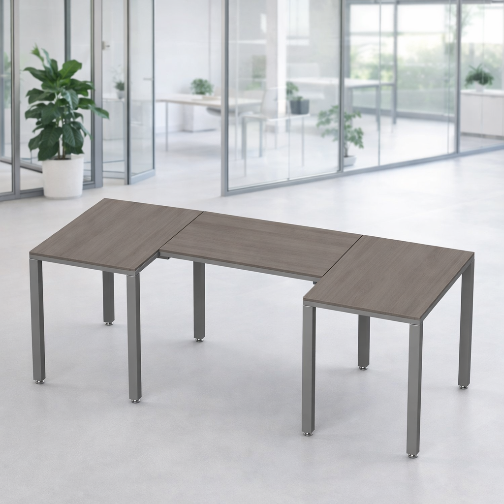 El escritorio en U conformada por 3 escritorios es ideal para un ejecutivo ya que permite una distribución eficiente del espacio, facilita la colaboración con otros compañeros y proporciona un entorno de trabajo versátil que puede usarse para reuniones, presentaciones y tareas individuales, todo al mismo tiempo.