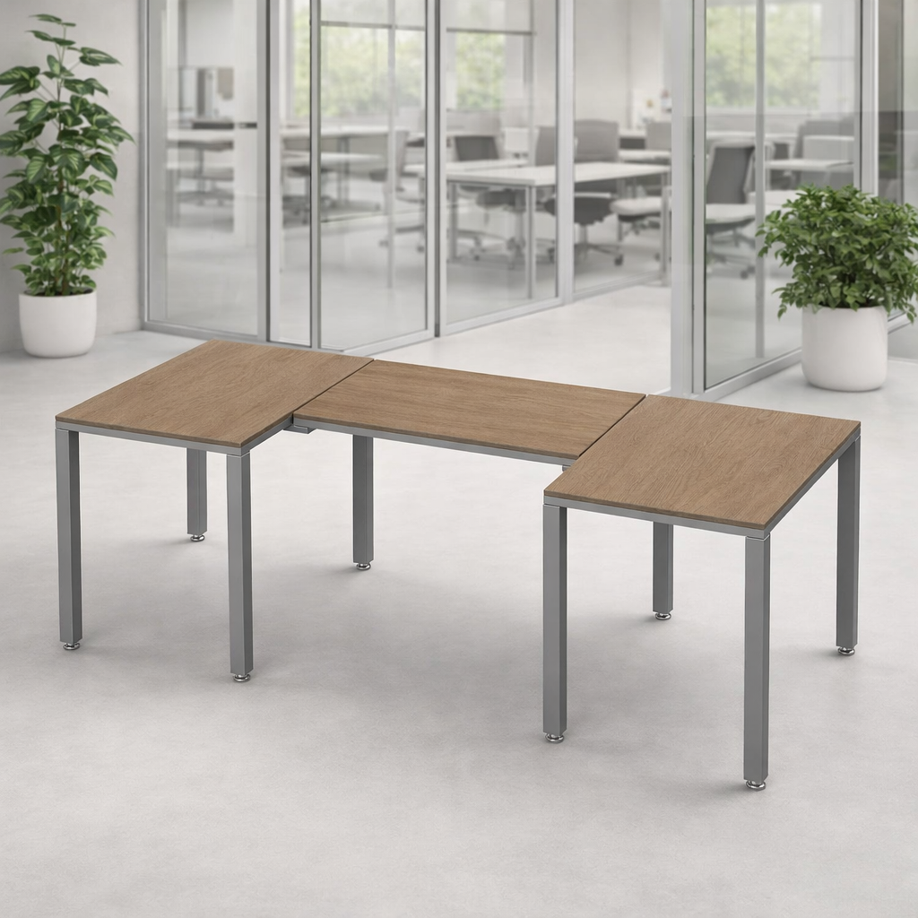 El escritorio en U conformada por 3 escritorios es ideal para un ejecutivo ya que permite una distribución eficiente del espacio, facilita la colaboración con otros compañeros y proporciona un entorno de trabajo versátil que puede usarse para reuniones, presentaciones y tareas individuales, todo al mismo tiempo.
